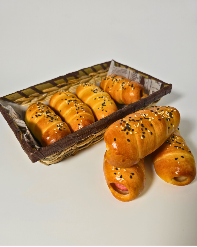 тесто дрожжевое, сосиска в/с, кунжут