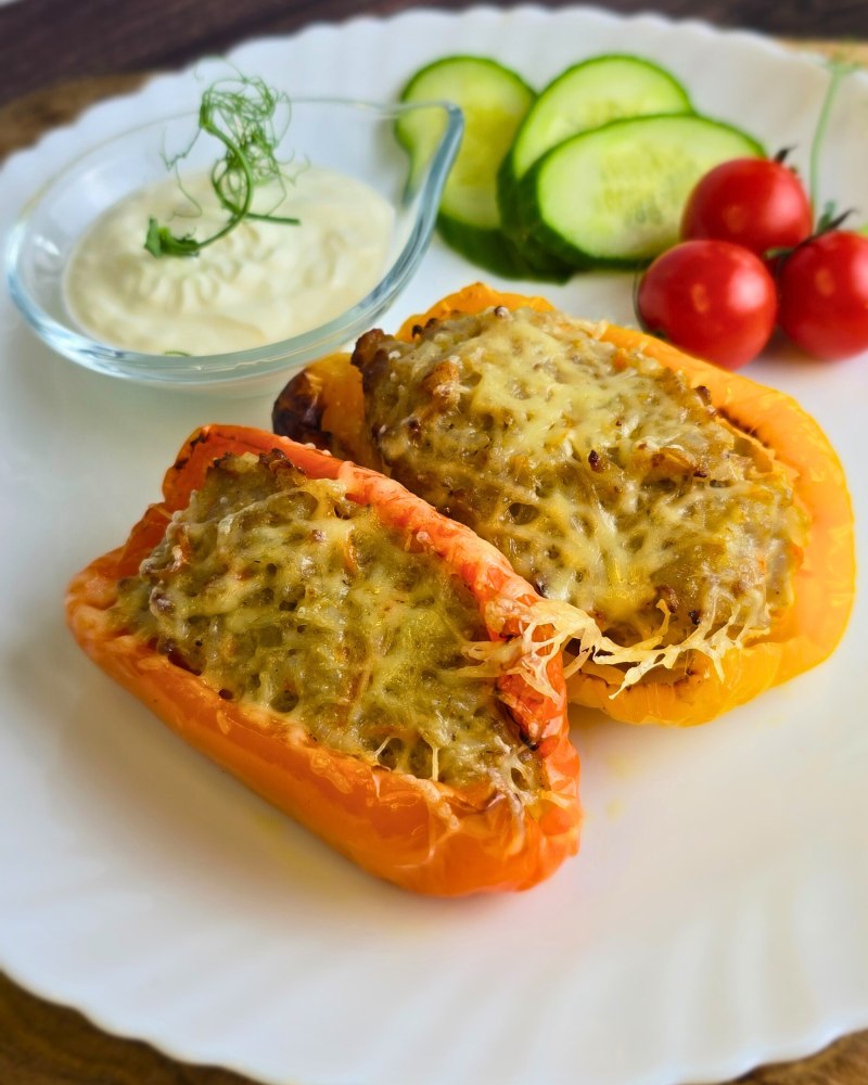 перец болгарский, рис, фарш свиной, морковь, лук репчатый, соль, специи, сметана